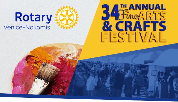 For over 30 Years the Venice-Nokomis Rotary Club has hosted the most artist friendly Art Festival in South Florida. Our artists consistently give us great reviews for the support we provide, easy in-load and out-load, enthusiastic crowds, and overnight security. We attract thousands of attendees with our array of artists, antique/classic automobiles, live music, family fun, tasty food, and drink. Venice is directly on the Gulf of Mexico and has some of the best beaches in Florida which attract thousands of northerners every winter. Again, this year we will have a large circus tent as an option for artists who prefer protection from the elements. This year the City of Venice will again host the City of Venice Road E-O, a popular equipment operating competition that draws crowds of spectators to the event. The Rotary Art Festival has grown in popularity over the past years, and we expect to continue to attract more artists and larger attendance in 2026.